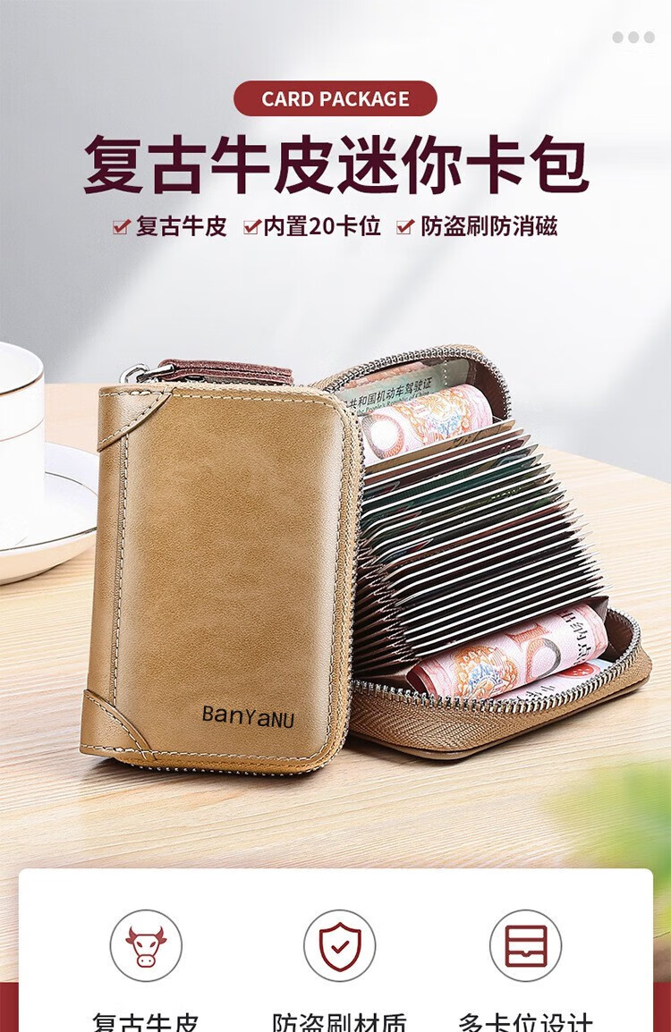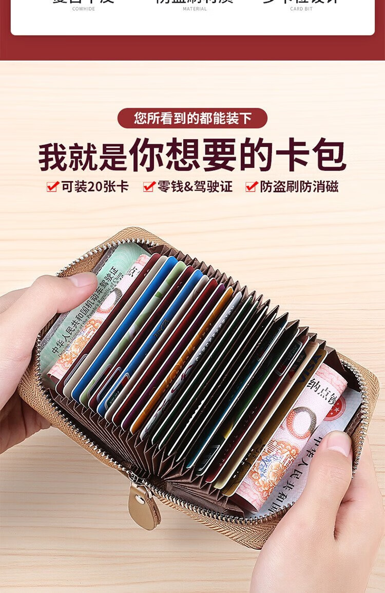 威纳登卡包男银行卡片包真皮多卡位卡套防消磁驾驶证名片夹女商务证件卡 卡其色【20卡位】